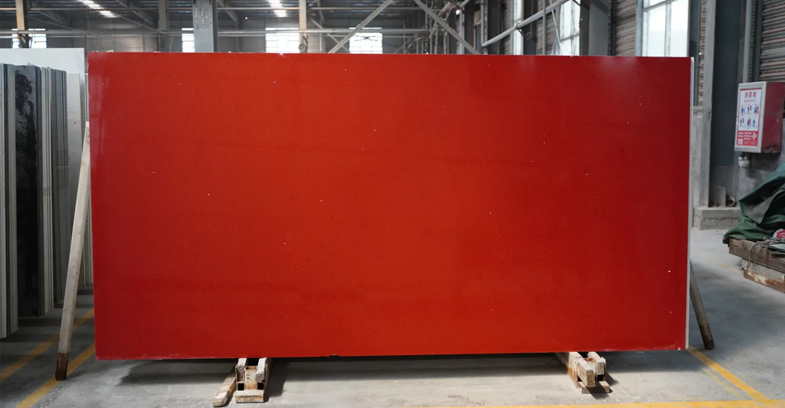 Artificial Quartz Stone Slab Diamond Red For Wholesale, Projects and Kitchen Countertops